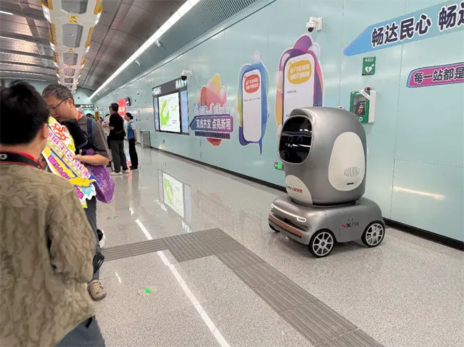 9月28日上午11点18分,深圳地铁16号线二期和6号线支线二期正式开通初期运营。欢呼雀跃的市民们涌入站台,争相体验这两条期待已久的新线路。在大安站,一位不同寻常的“乘客”吸引了大家的目光——万纬物流集成研发的地铁机器人受邀亮相,成为这条新线上的一道独特风景线。