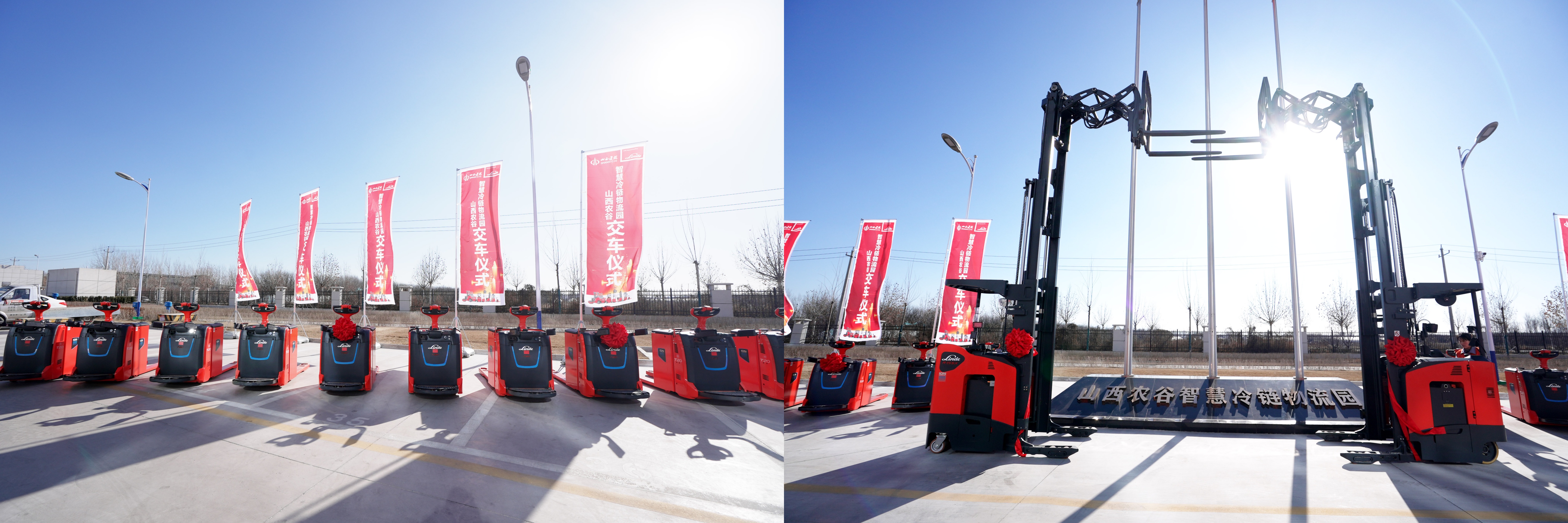 2025年1月9日,山西农谷智慧冷链物流园交车仪式在山西晋中圆满落幕。活动现场,超50台崭新的林德共享叉车整装亮相,包括站驾式电动托盘搬运车、电动平衡重叉车以及电动前移式叉车等多种车型,凭借其出众性能配置和强劲的绿色动力,助力山西农谷智慧冷链物流园高效流转,一路领“鲜”。